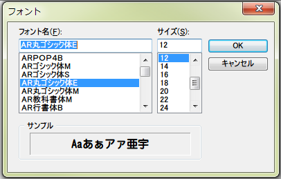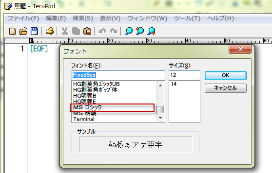 フォントをMSゴシックに、サイズを12に変更しました。