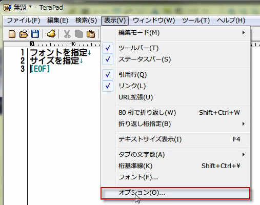 オプションを終了してTeraPadの画面に戻ります。