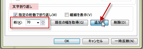 70桁を追加します。OKをクリックします。