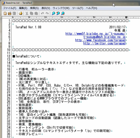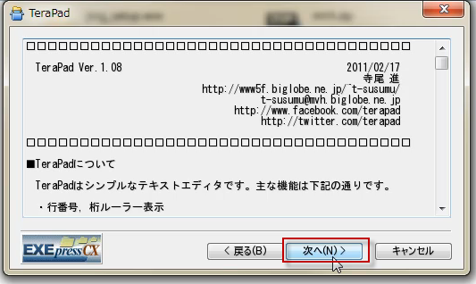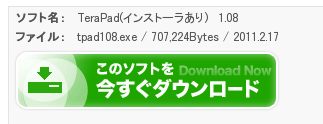 TeraPad(インストーラーあり)1.08をダウンロードします。